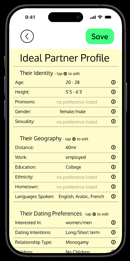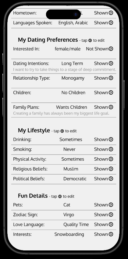 I designed a mobile dating app concept focused on creating more meaningful and efficient connections by prioritizing user preferences and reducing unnecessary interactions. The app emphasizes personalization, clarity, and intentional matching.